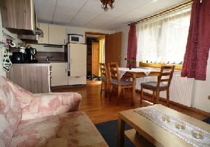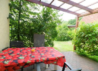 Die Ferienwohnung ist eine gemütlich eingerichtete Ferienwohnung. In den Wohnbereich ist eine moderne Küche mit Herd, Backofen, Kühlschrank, Toaster, Mikrowelle, Geschirrspüler, Kaffeemaschine und Esstischgarnitur integriert. Das Wohnzimmer verfügt außerdem über eine gemütliche Sitzecke mit Sat-TV und Radio/CD. Das Bad ist mit WC, Waschtisch und Dusche ausgerüstet. Vor der Ferienwohnung befindet sich eine überdachte Terrasse mit Gartenmöbeln und Grill. |